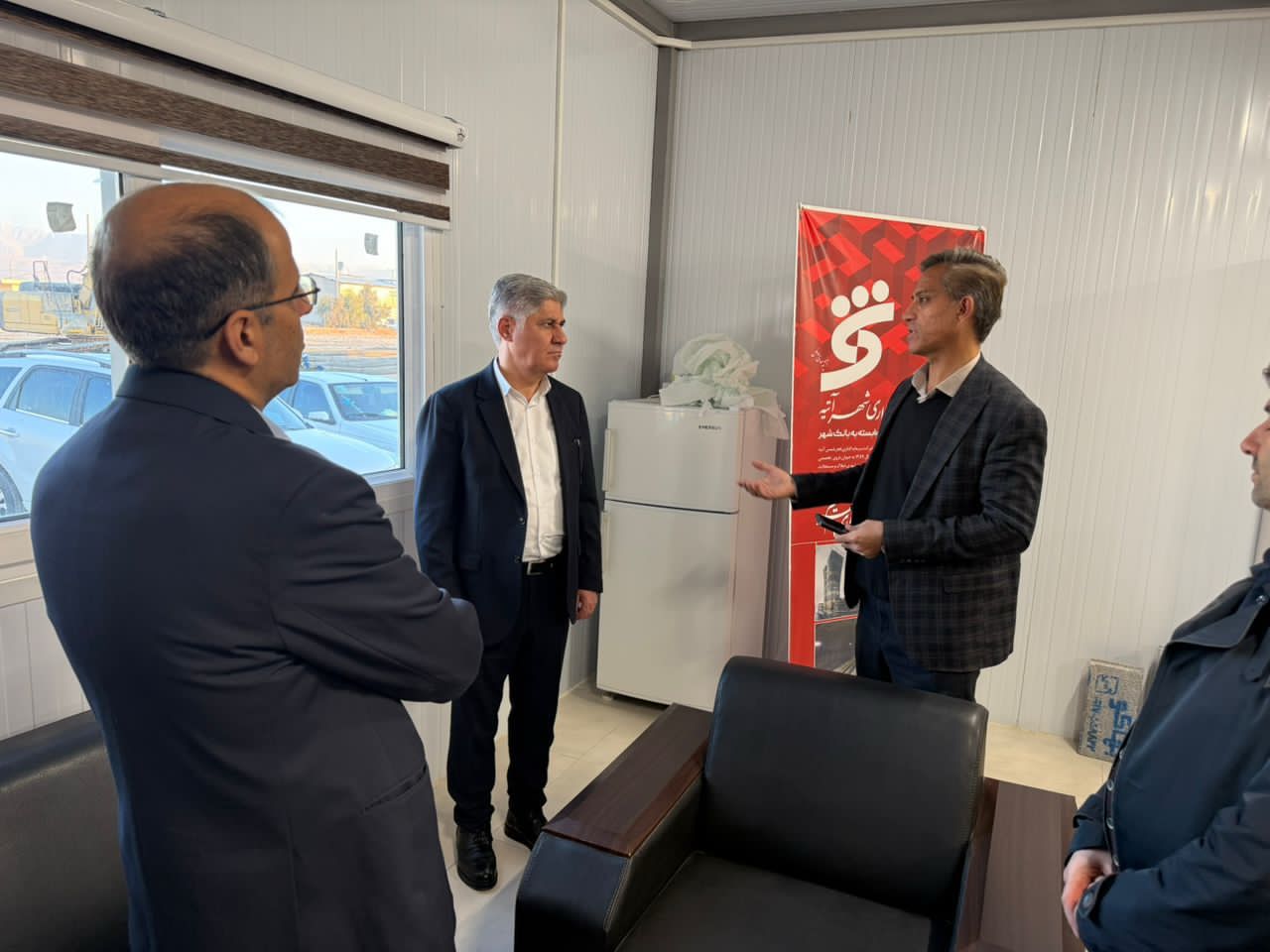در ادامه و پس از جلسه مذکور در محل عملیات اجرایی احداث سوله ها و بخش های اداری بازار میوه و تره بار این شهر حاضر و از روند اقدامات پیمانکاران و فعالیت های ایشان بازدید بعمل آمد و نیز جلساتی با پیمانکاران و تامین کنندگان این پروژه انجام پذیرفت .